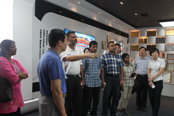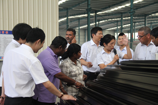 亞洲國家行業(yè)商會(huì)領(lǐng)導(dǎo)一行參觀了經(jīng)典集團(tuán)文化中心、項(xiàng)目管理中心、綜合辦公室、營銷中心和鋼結(jié)構(gòu)制造生產(chǎn)車間,杜福生總經(jīng)理介紹了經(jīng)典集團(tuán)生產(chǎn)經(jīng)營、技術(shù)創(chuàng)新、產(chǎn)學(xué)研合作、對(duì)外承攬工程等有關(guān)情況,并與外賓們親切交流。