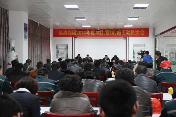 2月7日,為推進2014年度戰(zhàn)略目標順利實施,經(jīng)典集團隆重召開項目、營銷、施工動員大會。集團公司高層領(lǐng)導(dǎo)苗樹文、杜福生、鄭建康、司紅玲、鄭利昌、高建國出席了此次會議,集團公司有關(guān)部門負責(zé)人、項目經(jīng)理、營銷人員、施工隊長、生產(chǎn)車間負責(zé)人等80余人參加了此次大會。