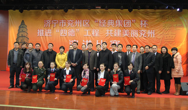 濟(jì)寧市兗州區(qū)“經(jīng)典集團(tuán)杯”推進(jìn)“四德”工程共建美麗兗州演講比賽在經(jīng)典集團(tuán)舉辦