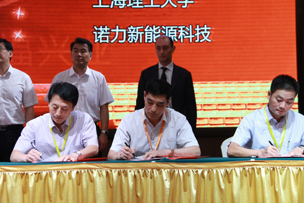 經典集團董事長苗樹文(中間)上海理工大學食品與醫(yī)療器械學院院長劉寶林(左一)共同出席首輪簽約儀式