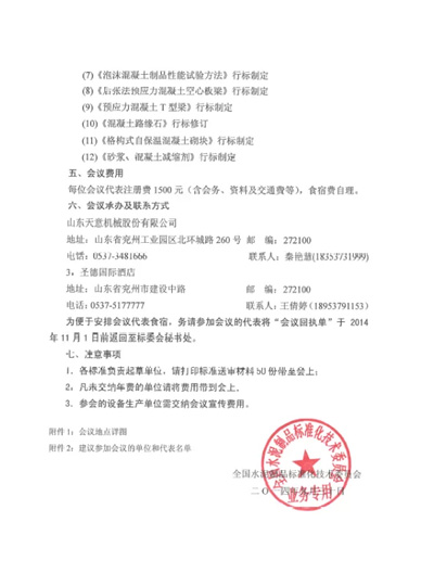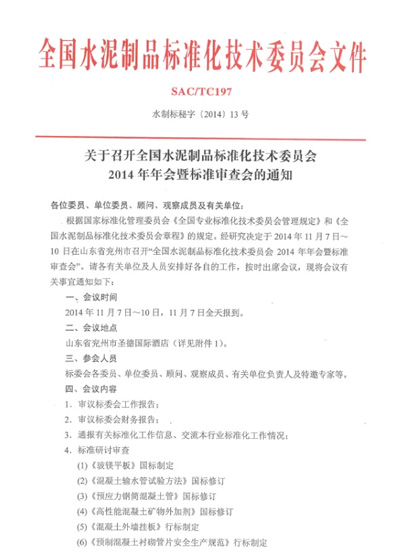 【會務公告】全國水泥制品標準化技術委員會2014年年會暨標準審查會