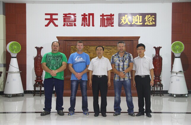 2014年6月18日,南非客戶蒞臨天意機械考察新型建材設備,公司外貿部成員親切接待。
